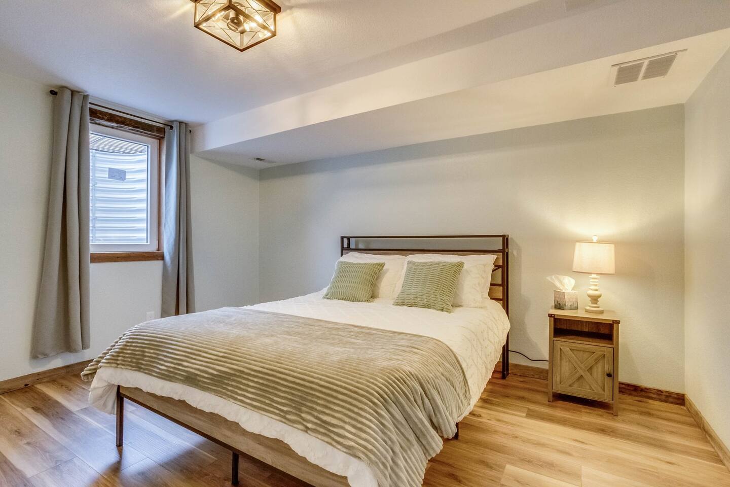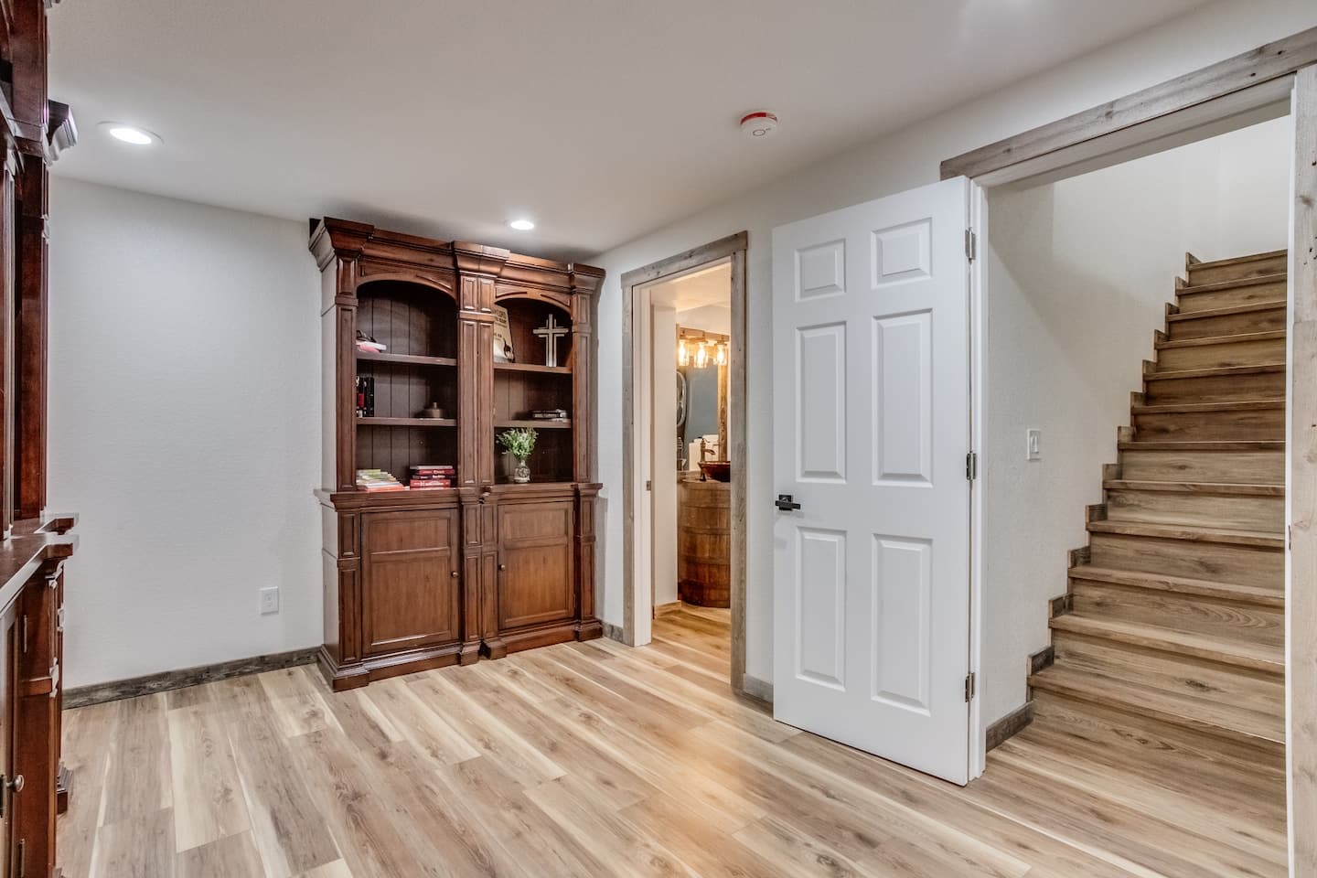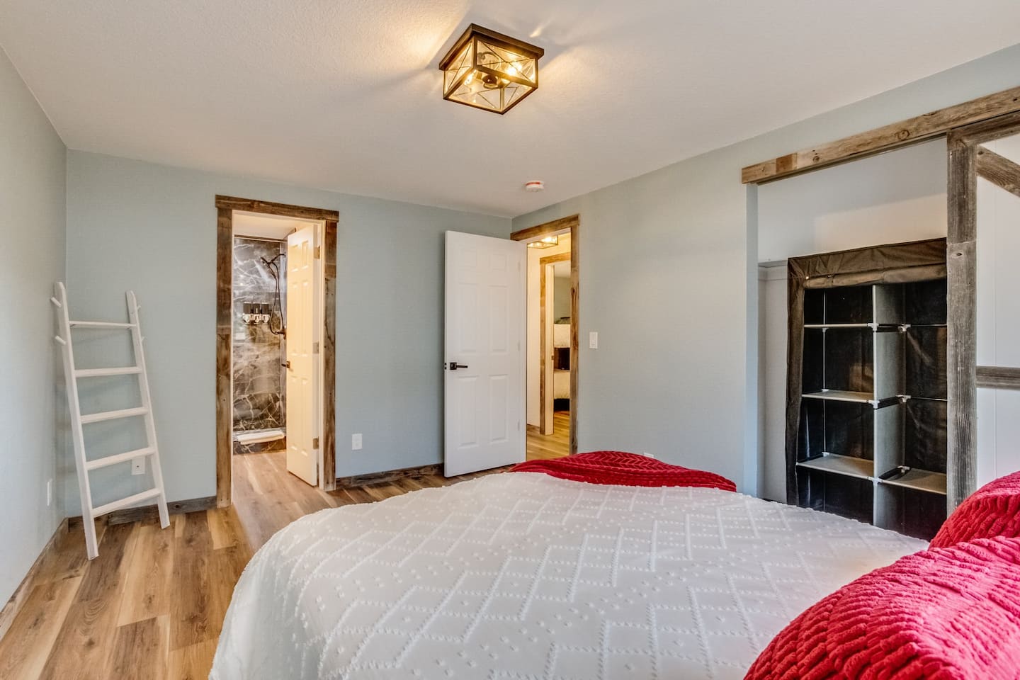 After an exciting day exploring nearby Rocky National Park, lakes, and biking trails, grab a bite from the famous Bar Rescue CJ's Bar and Grill which is just down the street. A quick 6-minute drive, Downtown Loveland hosts a number of bars/breweries and restaurants along with year around festivals including live music in the summer and ice sculptures in the winter. Finish your day by escaping the stress of everyday life in a cozy bedroom behind our secret library bookshelf door!