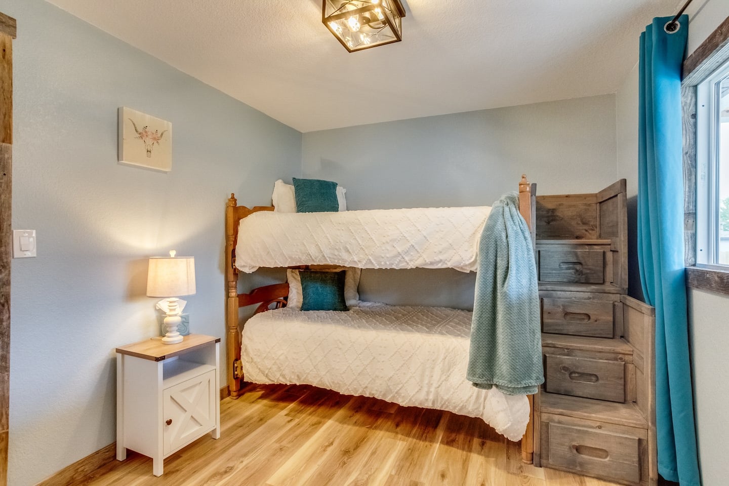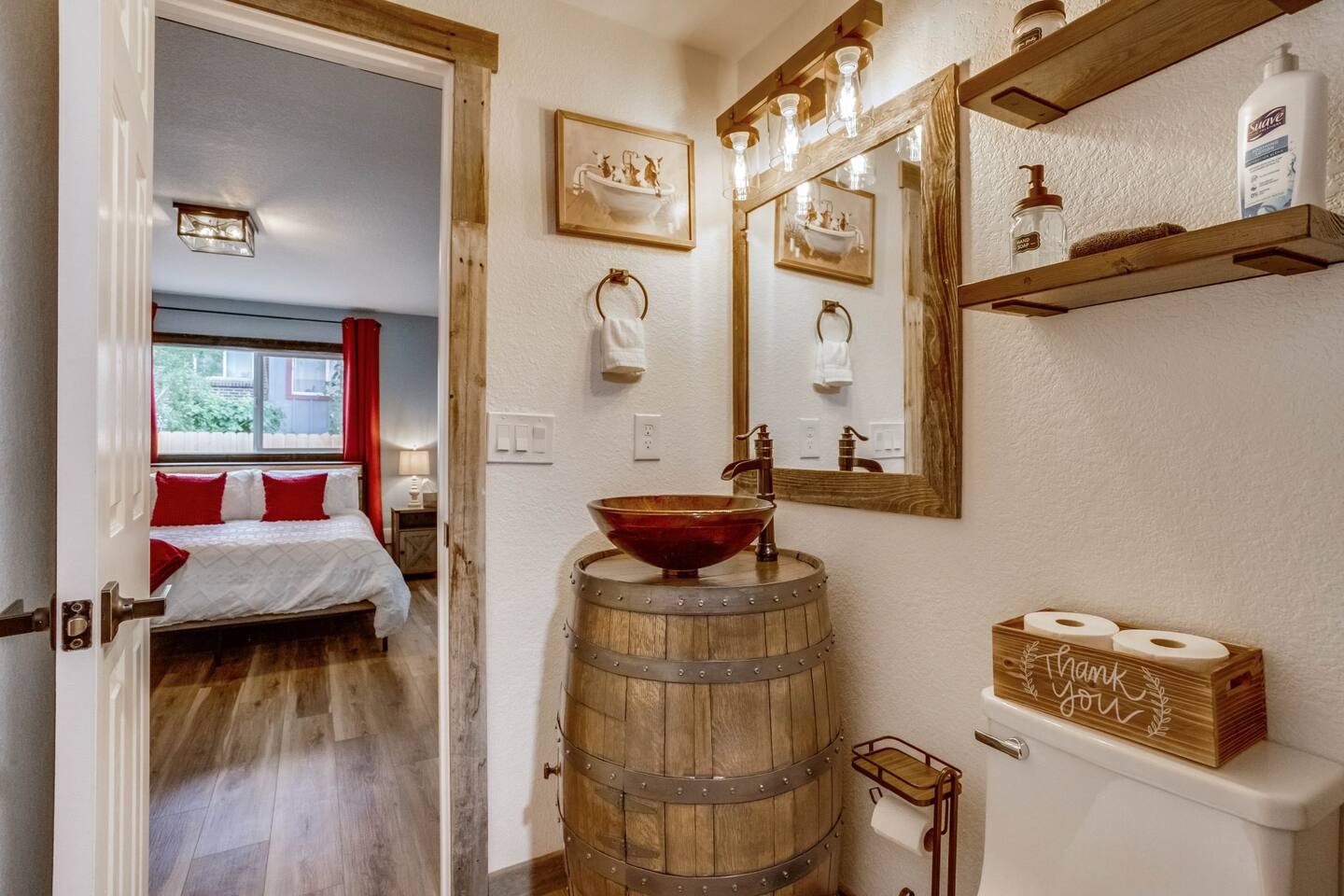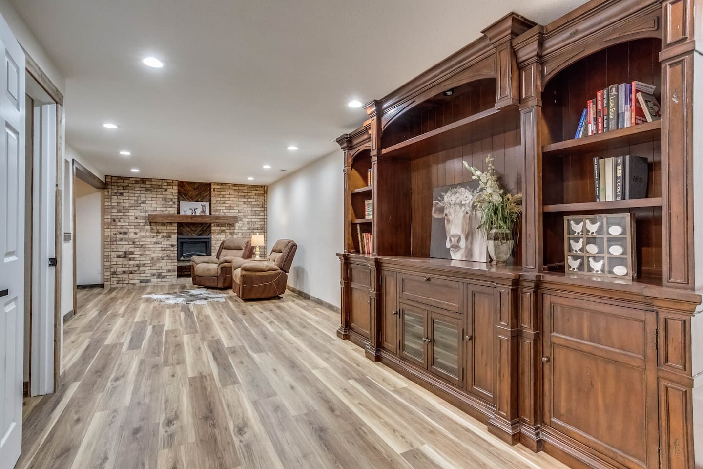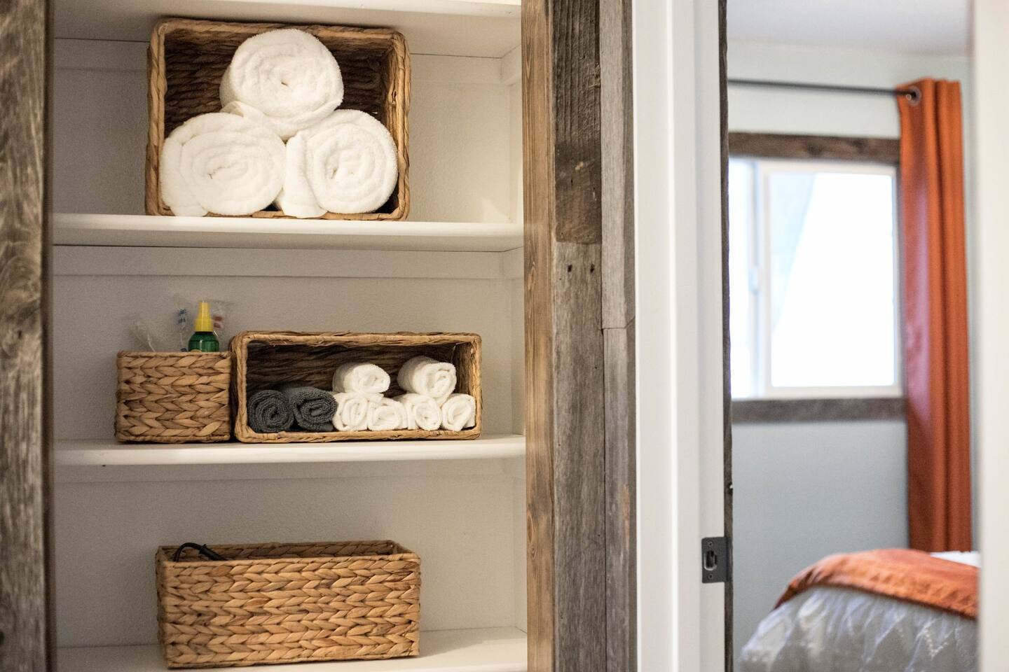 After an exciting day exploring nearby Rocky National Park, lakes, and biking trails, grab a bite from the famous Bar Rescue CJ's Bar and Grill which is just down the street. A quick 6-minute drive, Downtown Loveland hosts a number of bars/breweries and restaurants along with year around festivals including live music in the summer and ice sculptures in the winter. Finish your day by escaping the stress of everyday life in a cozy bedroom behind our secret library bookshelf door!